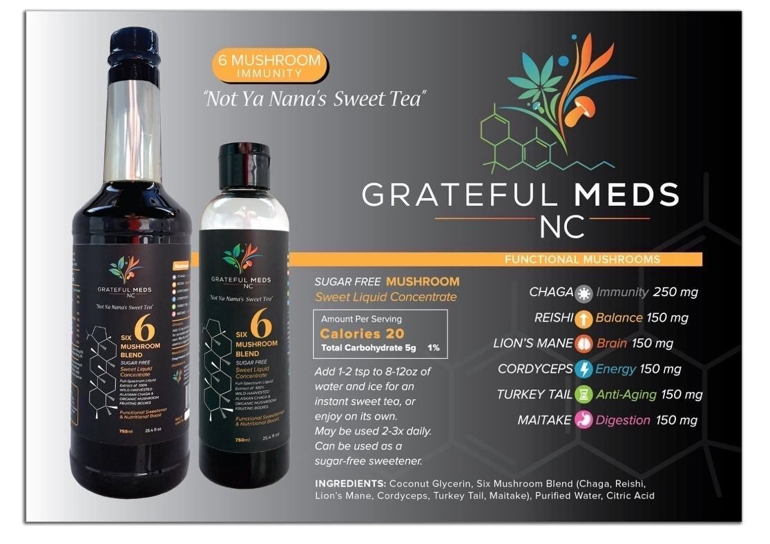 Grateful Meds. Direct from US, Organic 6 Mushroom Blend sweet liquid concentrate, sugar free!!